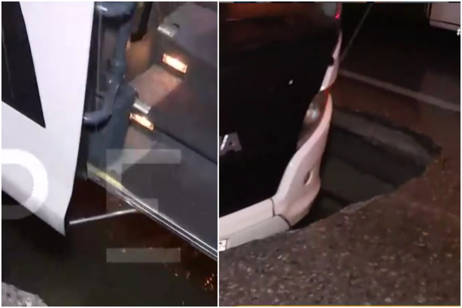 Προβλήματα προκάλεσε και στην Θεσσαλονίκη η κακοκαιρία «Μπάλλος», καθώς τις πρώτες πρωινές ώρες λεωφορείο έπεσε σε λακούβα πέντε μέτρων!