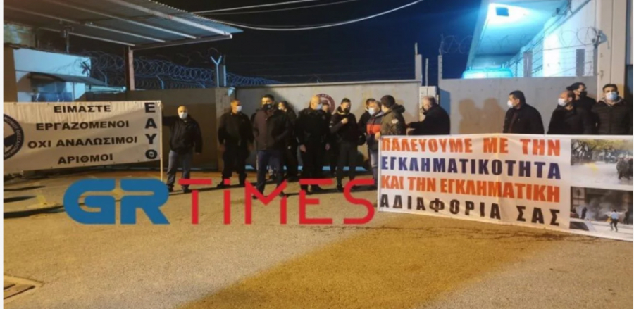 Συγκέντρωση διαμαρτυρίας έξω από την έδρα της Υποδιεύθυνσης Μεταγωγών – Δικαστηρίων στη Θεσσαλονίκη, πραγματοποίησαν αστυνομικοί οι οποίοι διαμαρτύρονται για τις εγκαταστάσεις, τις σοβαρές ελλείψεις προσωπικού αλλά και τον μεγάλο συνωστισμό από υπεράριθμους κρατούμενος, μετατρέποντας ουσιαστικά τα συγκεκριμένα κρατητήρια σε άτυπες φυλακές.