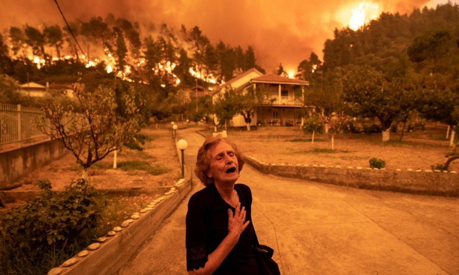 Τον γύρο του πλανήτη έκανε η φωτογραφία της κυρίας Παναγιώτας στην Εύβοια, η οποία βρισκόμενη σε απόγνωση έβλεπε τη φωτιά να πλησιάζει το σπίτι της.