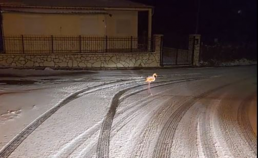 Σύμφωνα με το evrytanika.gr, σε βίντεο που αναρτήθηκε από κάτοικο, στον Άγιο Νικόλαο Ευρυτανίας, εμφανίζεται ένα φλαμίνγκο να περιφέρεται στο χιόνι, σε έναν από τους δρόμους του χωριού.