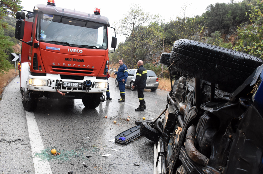 Από το ατύχημα τραυματίστηκε μια γυναίκα, η οποία διακομίστηκε σε νοσοκομείο με ασθενοφόρο του ΕΚΑΒ.