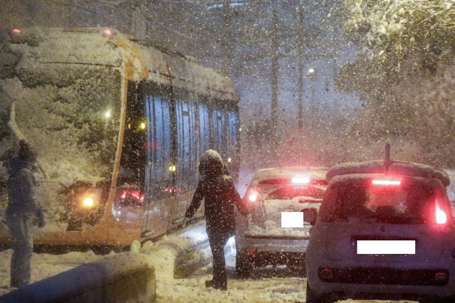 Το Τραμ... κόλλησε στο χιόνι