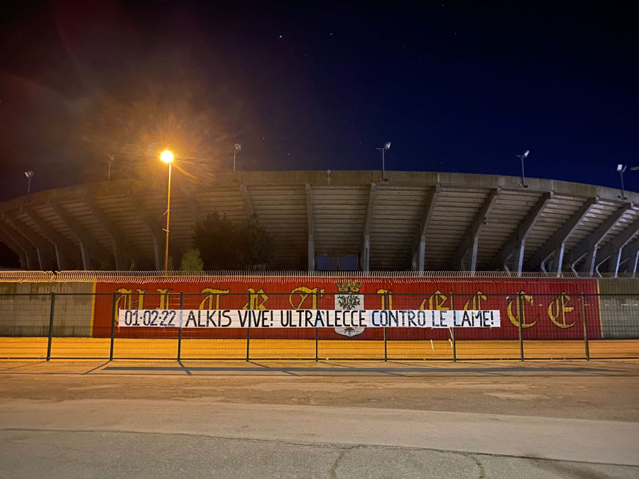 Στο πανό αυτό οι Ούλτρας της Λέτσε γράφουν τα εξής: «Ο Άλκης ζει. Οι ούλτρας της Λέτσε ενάντια στα μαχαίρια»
