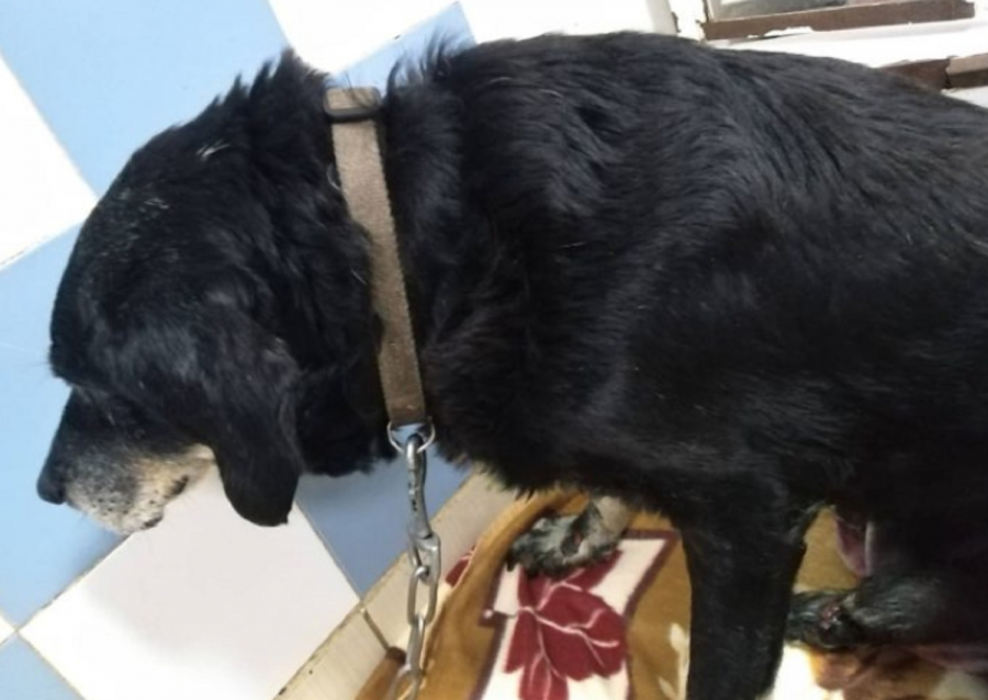 Ο Λάκης είναι ένας ηλικιωμένος σκύλος, ο οποίος νοσηλεύεται σε κατάσταση σοκ, εμφανώς τραυματισμένος λόγω του περιστατικού.
