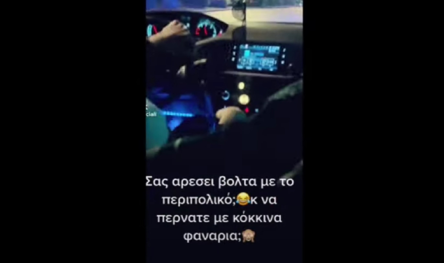 Στο βίντεο που διαρκεί μόλις 8 δευτερόλεπτα και έχει ανέβει στο TikTok καταγράφεται η καμπίνα περιπολικού, στο οποίος οδηγός είναι αστυφύλακας και ο συνοδηγός υπαστυνόμος. Στο βίντεο ακούγονται οι φωνές γυναικών που διασκεδάζουν με την κατάσταση.