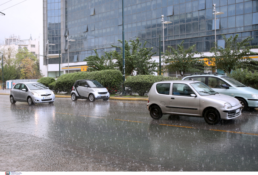 Στο κέντρο της Αθήνας παρατηρείται επίσης ισχυρή βροχόπτωση.