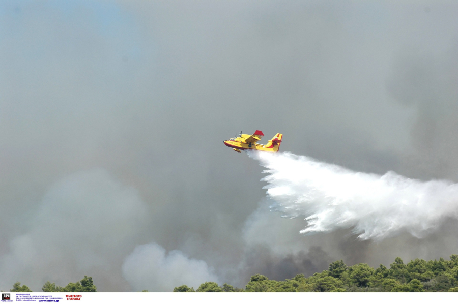 Από αέρος συνδράμουν στην κατάσβεση της φωτιάς 4 αεροσκάφη και τρία ελικόπτερα.
