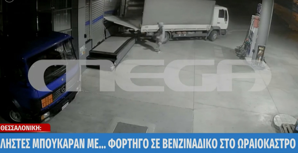 Πιο αναλυτικά, σε βίντεο από κάμερες ασφαλείας φαίνονται οι επίδοξοι ληστές να προσπαθούν να διαρρήξουν το βενζινάδικο με... φορτηγό.
