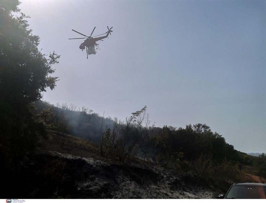 Σύμφωνα με την Πυροσβεστική, η φωτιά καίει χαμηλή βλάστηση, ενώ στην περιοχή υπάρχουν και πεύκα.