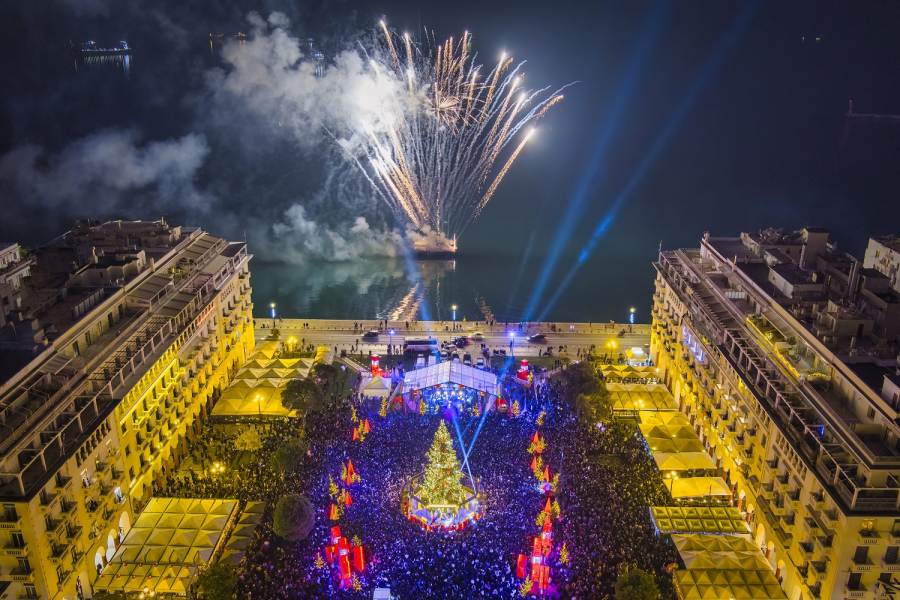 Η είσοδος στο 2023 θα συνοδευτεί από εξάλεπτο σόου πυροτεχνημάτων. Το υπερθέαμα χρωμάτων και σχεδίων, που αναμένεται να φωτίσει τον ουρανό, αποτελεί χορηγία του Εμπορικού και Βιομηχανικού Επιμελητηρίου Θεσσαλονίκης (ΕΒΕΘ).