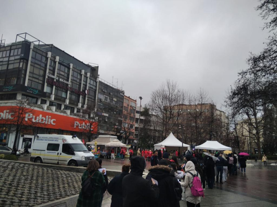 Από νωρίς το πρωί πολίτες προσέρχονται στην πλατεία έξω από το Μέγαρο όπου ο ερυθρός σταυρός πραγματοποιεί αιμοδοσία για τα θύματα του τραγικό δυστυχήματος. Αυτήν την ώρα ο αριθμός της αναμονής υπερβαίνει τα 100 άτομα ενώ στην πλειοψηφία τους είναι νέοι άνθρωποι.