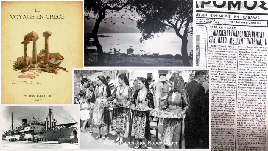 Το σημαντικό αυτό γεγονός της επίσκεψης των Γάλλων τουριστών στο νησί, είχε καταγράψει η τοπική εφημερίδα της Καβάλας ΤΑΧΥΔΡΟΜΟΣ με ημερομηνία 8 Σεπτεμβρίου 1933, το δημοσίευμα της οποίας ανέσυρε ο ερευνητής ιστορίας Κώστας Παπακοσμάς από τα αρχεία που φυλάσσονται στη δημοτική βιβλιοθήκη Καβάλας «Βασίλης Βασιλικός».