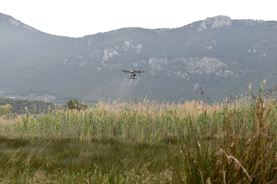 Οι ψεκασμοί έγιναν σε έκταση περίπου 2.500 (από 9.000 συνολικά) στρεμμάτων καθώς εκεί δεν υπάρχει προσβασιμότητα από εδάφους και πραγματοποιούνται βάσει ειδικής χαρτογράφησης που έχει προηγηθεί καθώς και δειγματοληψιών των πληθυσμών προνυμφών και στους 34 τομείς στους οποίους διαχωρίζεται ο υδροβιότοπος, με προτεραιότητα αυτούς όπου καταγράφεται υψηλή πυκνότητα.