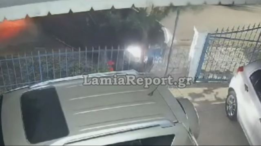 Στο βίντεο ντοκουμέντο του LamiaReport ακούγεται ένα αυτοκίνητο να έρχεται με μεγάλη ταχύτητα, ο οδηγός να χάνει τον έλεγχο και να πέφτει πάνω σε μάντρα σπιτιού, ενώ στη συνέχεια φεύγει σαν να μην συνέβη τίποτα.
