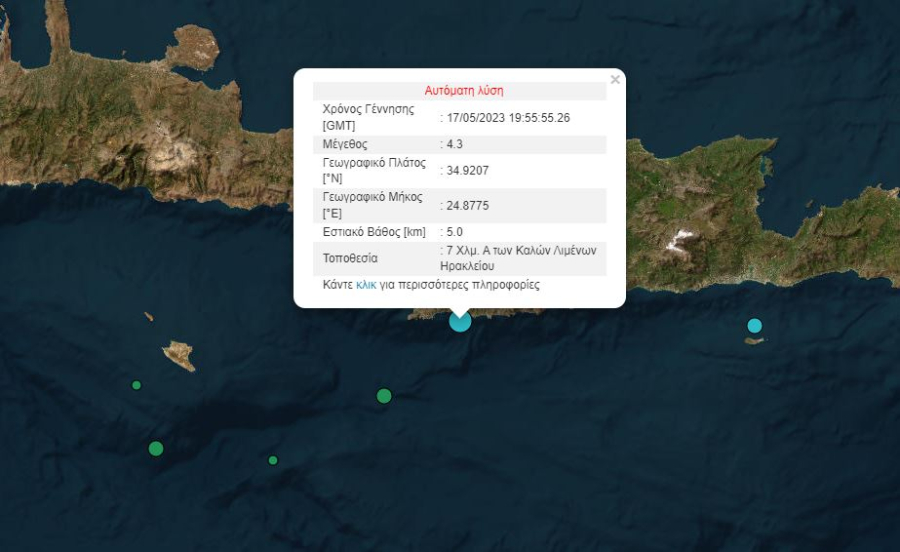 Ειδικότερα, ο σεισμός είχε μέγεθος 4,3 βαθμών της κλίμακας Ρίχτερ και εστιακό βάθος πέντε χιλιόμετρα.