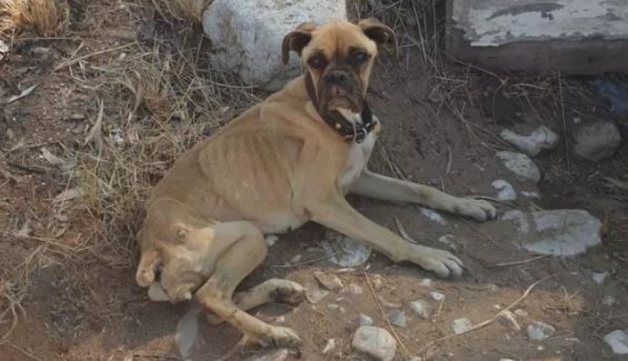 «Ακριβώς απέναντι από την παραλία της περιοχής ένα θηλυκό σκυλί ράτσας Boxer δεμένο με χοντρή αλυσίδα. Για την ακρίβεια ένα δείγμα σκυλιού καθώς το ζώο είναι κυριολεκτικά κόκκαλα και δέρμα. Όταν το σηκώσαμε για να το πάρουμε η αλυσίδα του ήταν πιο βαριά από το ίδιο το σκυλί.
