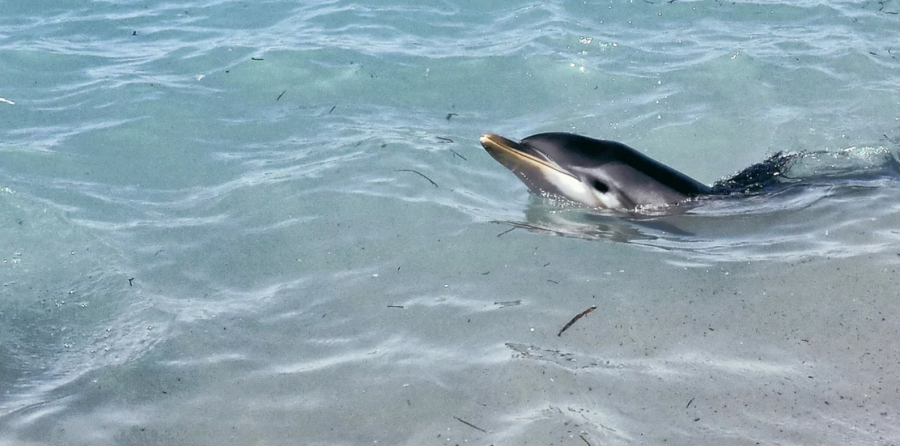 Παρά τις προσπάθειες των λουόμενων, τόσο στην παραλία Καλάμια, όσο και στην παραλία 5Φ νωρίτερα, να το μεταφέρουν στα βαθιά, αυτό επιστρέφει στα ρηχά.
