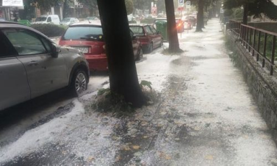 Πρωτοφανής χαλαζόπτωση εκδηλώθηκε στο κέντρο της πόλης των Ιωαννίνων, με το σκηνικό του καιρού μόνο με καλοκαίρι να μην μοιάζει. Το χαλάζι έχει μέγεθος φουντουκιού, με αποτέλεσμα οι δρόμοι και τα πεζοδρόμια να δείχνουν χιονισμένα.