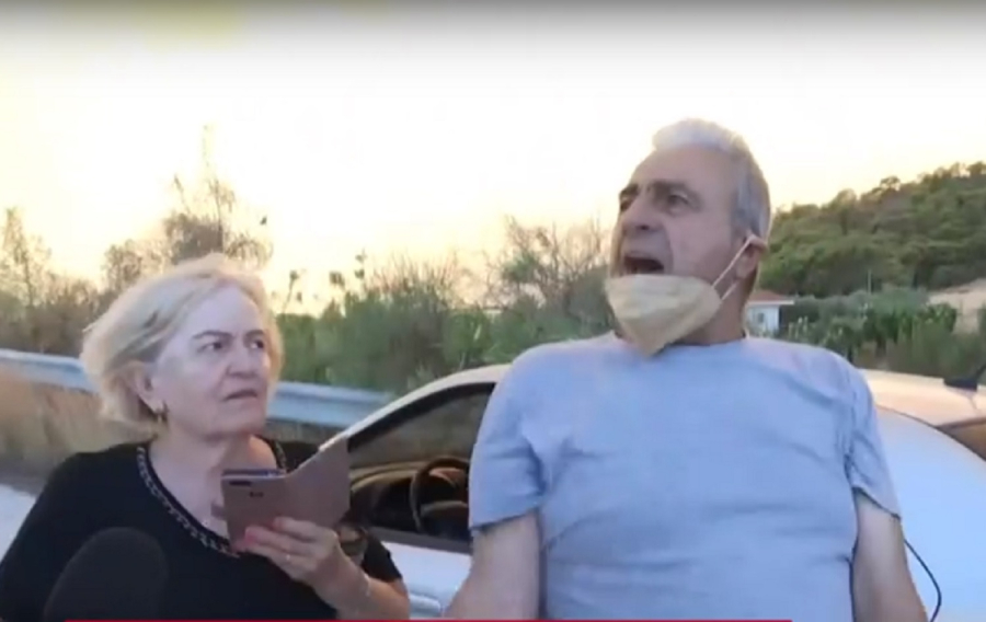 Η δημοσιογράφος του ΣΚΑΙ, Χρύσα Μπάτου, ρωτούσε τους κατοίκους για την κατάσταση που επικρατεί, καθώς οι φλόγες πλησιάζουν επικίνδυνα τα σπίτια τους.