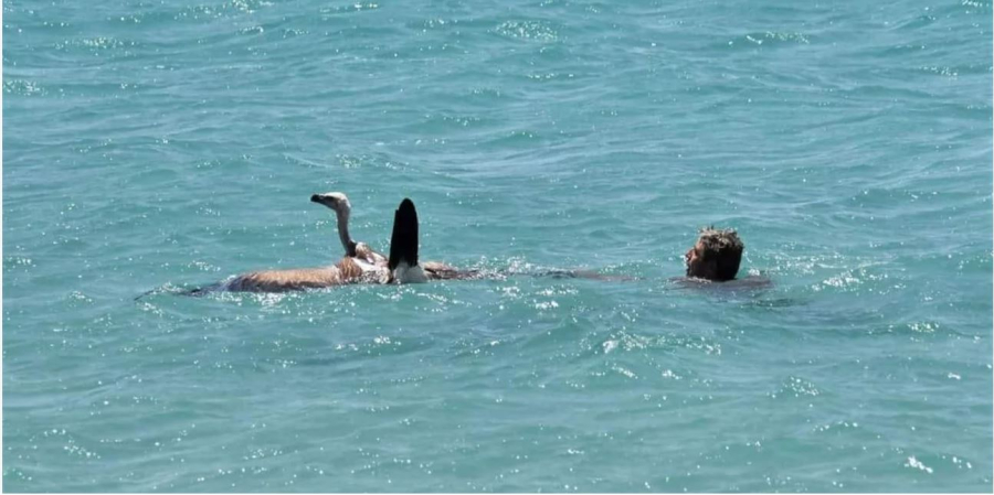Λουόμενος μετέβη στο σημείο και χωρίς δεύτερη σκέψη έσωσε τον γύπα, προτού αυτός πνιγεί.