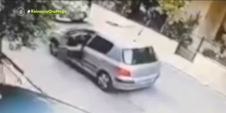 Κάμερα κλειστού κυκλώματος στο Ίλιον κατέγραψε τον οδηγό ενός αυτοκινήτου να πατάει απότομα το φρένο και να σταματά το όχημα του. Μέσα από το όχημα βγαίνουν δύο νεαροί άντρες.