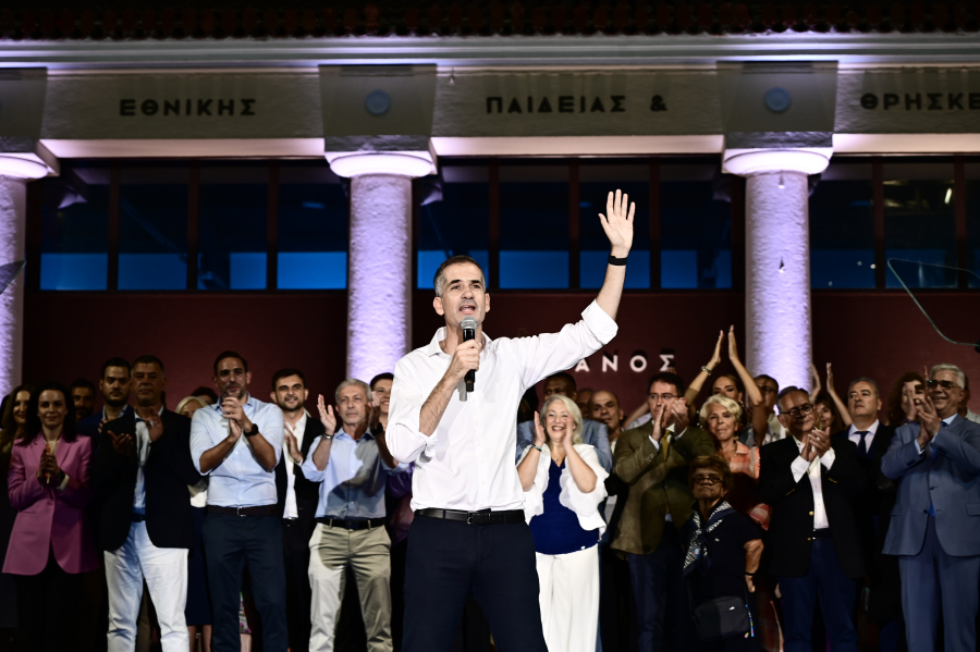 Υπό τους ήχους της μουσικής του Μάνου Χατζιδάκι σε διασκευή Κωνσταντίνου Βήτα - συνδέοντας την καρδιά της Αθήνας με τη σύγχρονη εκδοχή της - ο Κώστας Μπακογιάννης έδωσε το σύνθημα της νίκης: «Καλή μας αρχή! Αυτή η ομάδα, είναι η ομάδα της νίκης!».