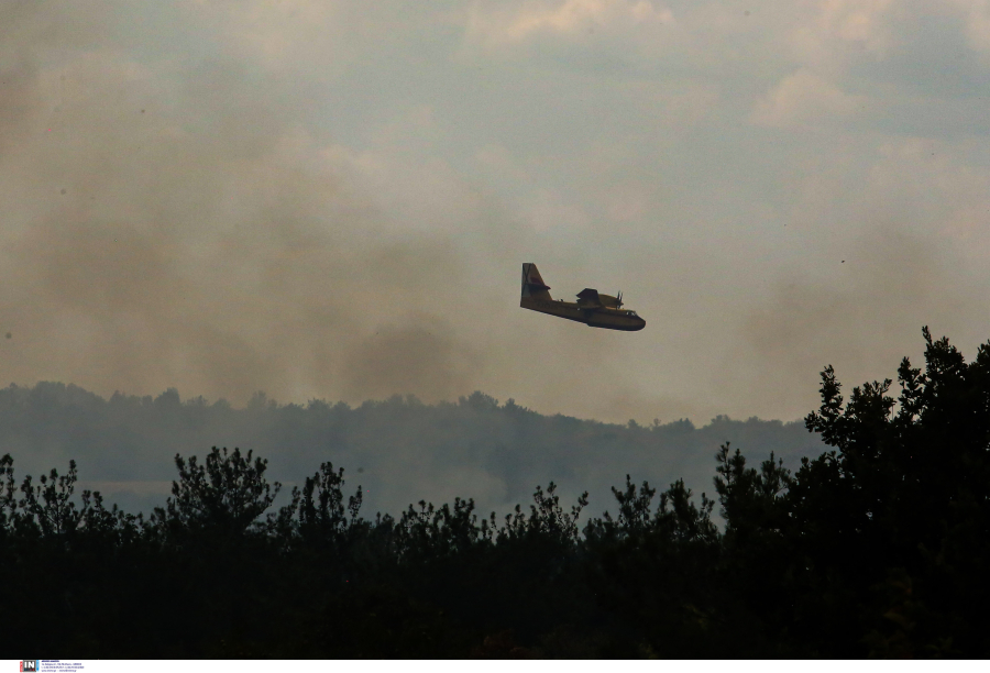 Επί τόπου επιχειρούν πέντε πυροσβέστες με τρία οχήματα, ενώ από αέρος συνδράμει ένα ελικόπτερο.
