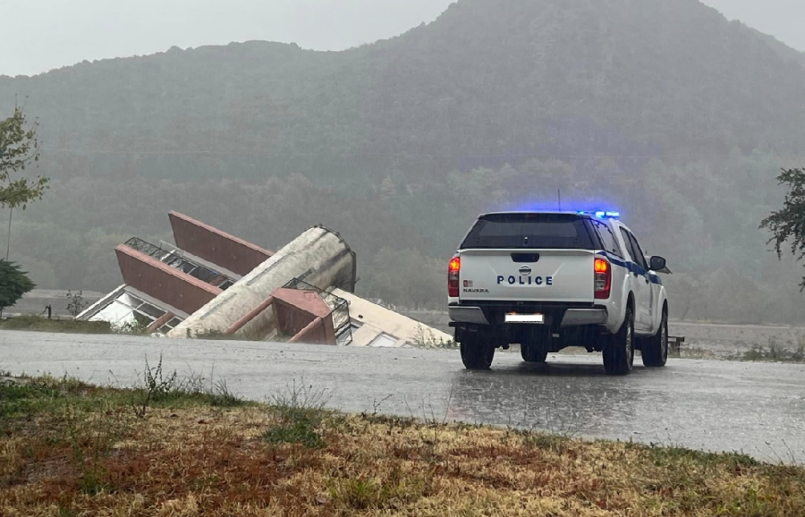 Η στάθμη του ποταμού ανεβαίνει ταχύτατα, περιουσίες έχουν καταστραφεί και υποδομές έχουν διαλυθεί. Στα πλάνα από drone διακρίνεται και το διώροφο που παρασύρθηκε από τα θεμέλια στο ποτάμι.