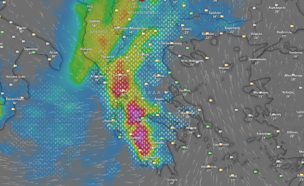 Σύμφωνα με το windy, νέο βαρομετρικό χαμηλό θα ρθει από την Ιταλία και θα χτυπήσει την χώρα σχεδόν σε όλη της την έκταση με πολλές βροχές, καταιγίδες και κεραυνούς. Συγκεκριμένα, το Σάββατο το μεσημέρι βροχές θα χτυπήσουν τα δυτικά της χώρας Ήπειρο, Στερεά Ελλάδα, δυτική Μακεδονία και Πελοπόννησος.