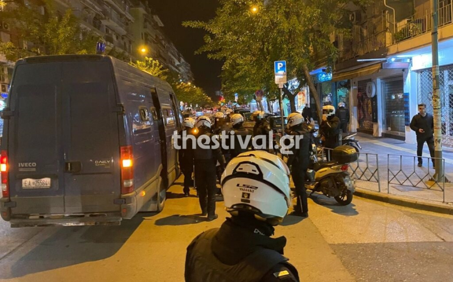 Νωρίτερα, το κέντρο της πόλης και συγκεκριμένα στην οδό Εγνατία, στο ύψος της Καμάρας, μετατράπηκε σε πεδίο μάχης. Ομάδα ατόμων που συμμετείχε στις πορείες, με καλυμμένα τα χαρακτηριστικά του προσώπου τους, πέταξε βόμβες μολότοφ κατά των αστυνομικών δυνάμεων, οι οποίες απάντησαν με ρίψη χημικών και κρότου λάμψης.