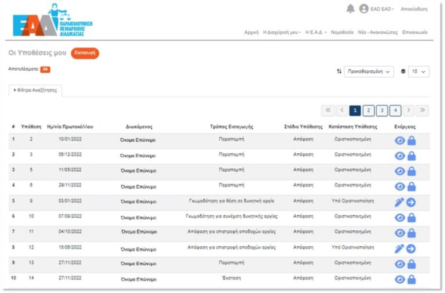 Η πιλοτική χρήση της εφαρμογής συμπεριέλαβε τους εξής φορείς: Υπουργείο Οικονομικών, Ανεξάρτητη Αρχή Δημοσίων Εσόδων, Δήμος Αθηναίων, e-ΕΦΚΑ, Περιφέρεια Κεντρικής Μακεδονίας, Δευτεροβάθμιο Πειθαρχικό Συμβούλιο του Υπουργείου Εσωτερικών, και ήδη έχουν καταχωριστεί 1.104 χρήστες και πλήθος πειθαρχικών υποθέσεων.
