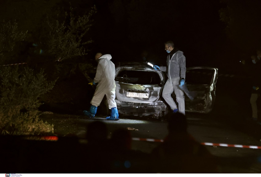 Γύρω από το καμένο αυτοκίνητο υπήρχαν κάλυκες και σύμφωνα με τις μέχρι στιγμής πληροφορίες το θύμα δε΄χθηκε περίπου 15 σφαίρες.