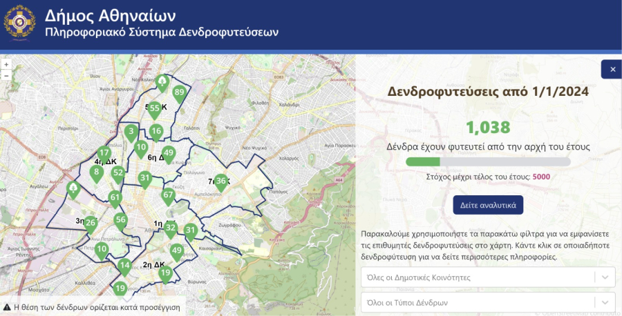 Δείτε εδώ το νέο πληροφοριακό σύστημα Δενδροφυτεύσεων του Δήμου Αθηναίων: https://athenstrees.cityofathens.gr/
