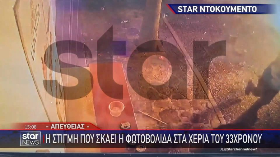 Στο παρακάτω βίντεο φαίνεται η στιγμή που σκάει η φωτοβολίδα και κυλά λίγα εκατοστά πιο πέρα και εκεί σβήνει.