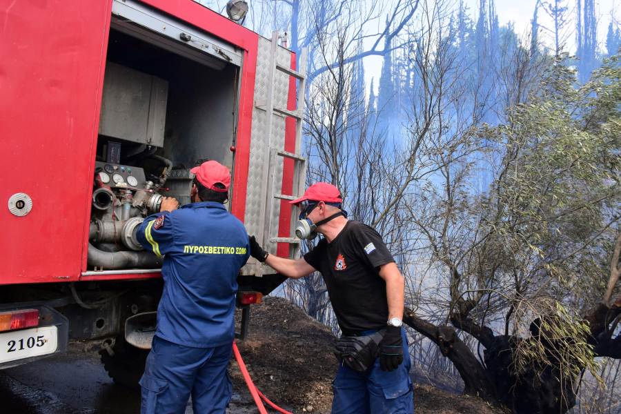 Νωρίτερα, προτού νυχτώσει, ρίψεις νερού πραγματοποιούσαν ένα ελικόπτερο και ένα αεροσκάφος.