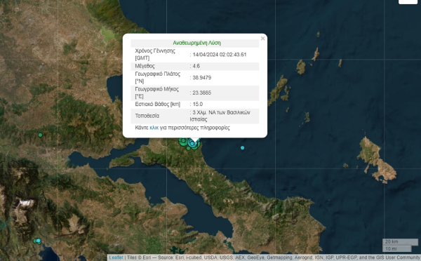 Νέος σεισμός μεγέθους 4,6 ρίχτερ σημειώθηκε στις 05:02 τα ξημερώματα στη Βόρεια Εύβοια. Το επίκεντρο του σεισμού ήταν 3 Χλμ. ΝΑ των Βασιλικών Ιστιαίας και είχε εστιακό βάθος 10 χλμ.