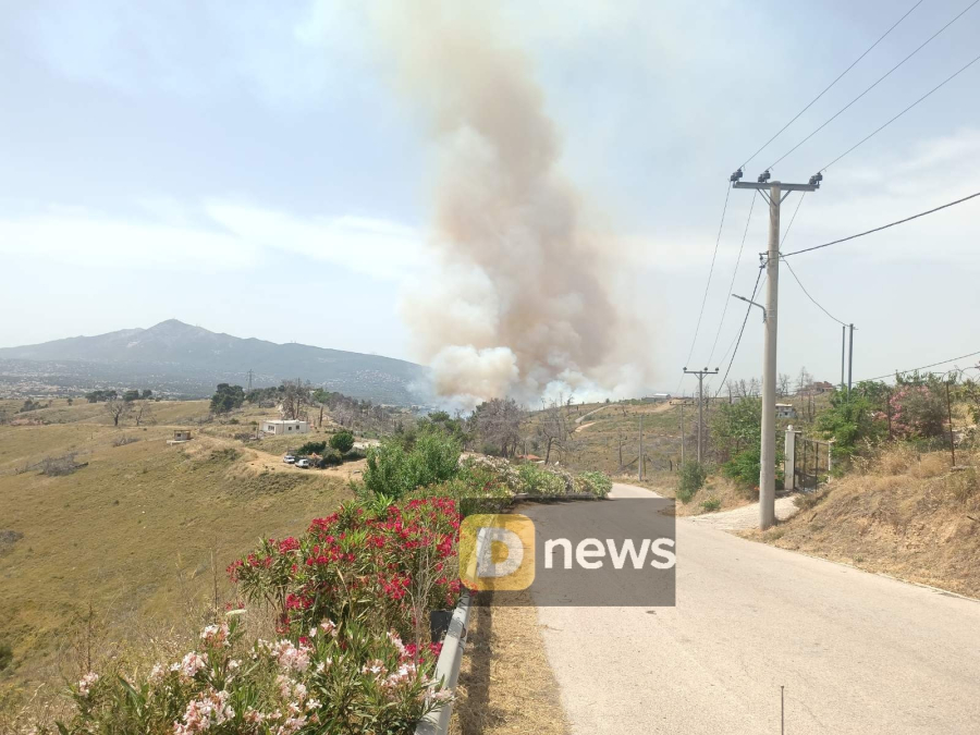 Σύμφωνα με την Πυροσβεστική, η φωτιά εκδηλώθηκε περίπου στις 11:15 και δεν απειλούνται, μέχρι στιγμής, σπίτια.