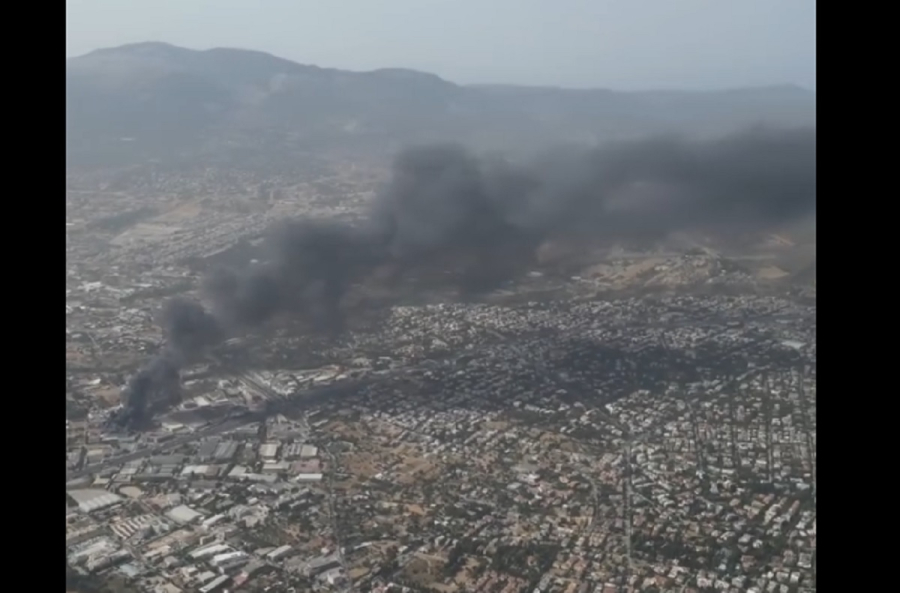 Ο μαύρος πυκνός καπνός που υψώνεται πάνω από το εργοστάσιο στην Κηφισιά είναι ορατός από μεγάλη απόσταση, ενώ ισχυρές πυροσβεστικές δυνάμεις- χερσαίες και εναέριες- δίνουν μάχη με τις μεγάλες φλόγες.