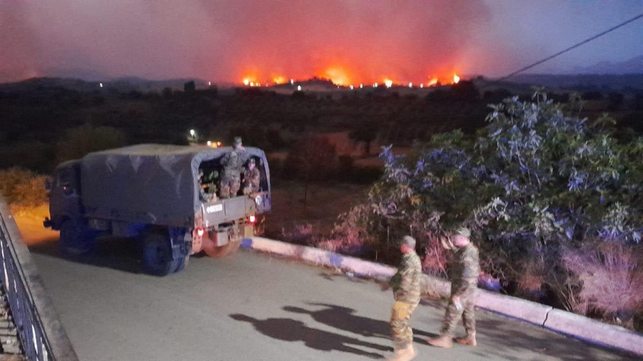 Εν τω μεταξύ στη μάχη της κατάσβεσης έχει «πέσει» και ο στρατός. Η φωτιά πέρασε τα χωριά Απιδούλα, Μαζαράκι όπου έχουν καεί σπίτια, με το ένα μέτωπο να κατευθύνεται προς τον Πρόδρομο, το δεύτερο προς Λάττα και το τρίτο προς Σιμόπουλο. Το δε πύρινο μέτωπο είναι τεράστιο, παρότι είχαν σηκωθεί το απόγευμα 9 εναέρια μέσα τα οποία δεν κατάφεραν να την σβήσουν.