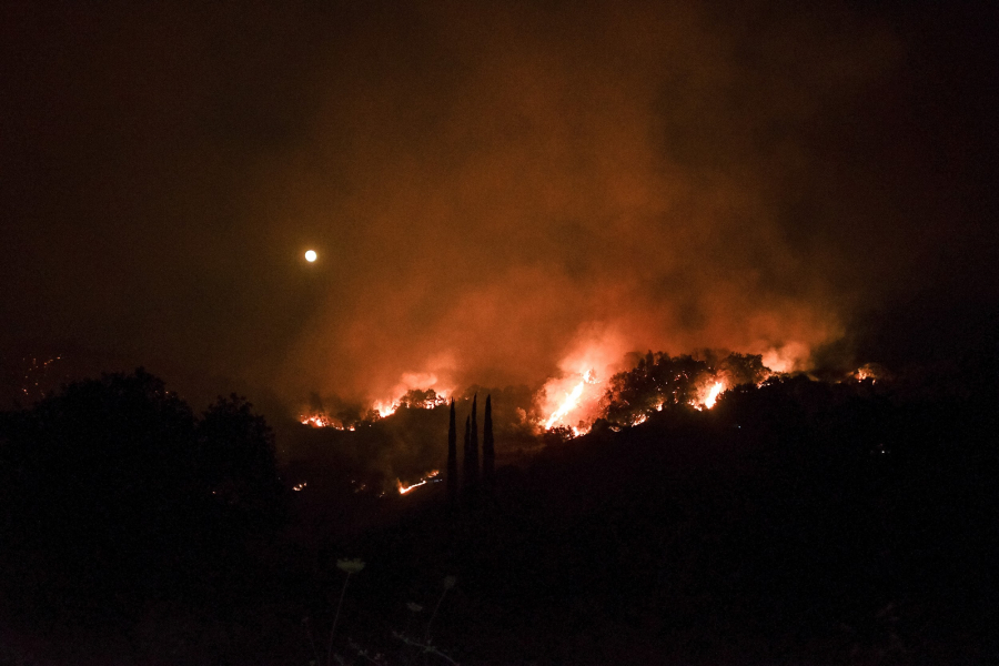 Στις 3:30 π.μ. το μέτωπο της φωτιάς εκτεινόταν από τα Ακούμια, την περιοχή Προδρόμου, την Κρύα Βρύση και έχει κατεύθυνση προς Τριόπετρα.