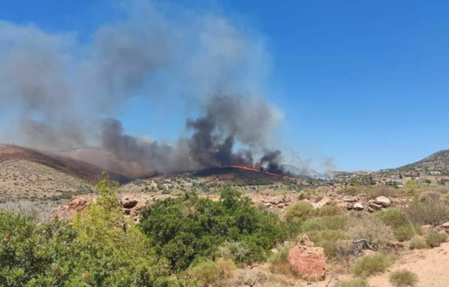 Σε εξέλιξη είναι η φωτιά που καίει ανεξέλεγκτα και εκδηλώθηκε σε χαμηλή βλάστηση στη περιοχή Πλάκα στη Κερατέα.