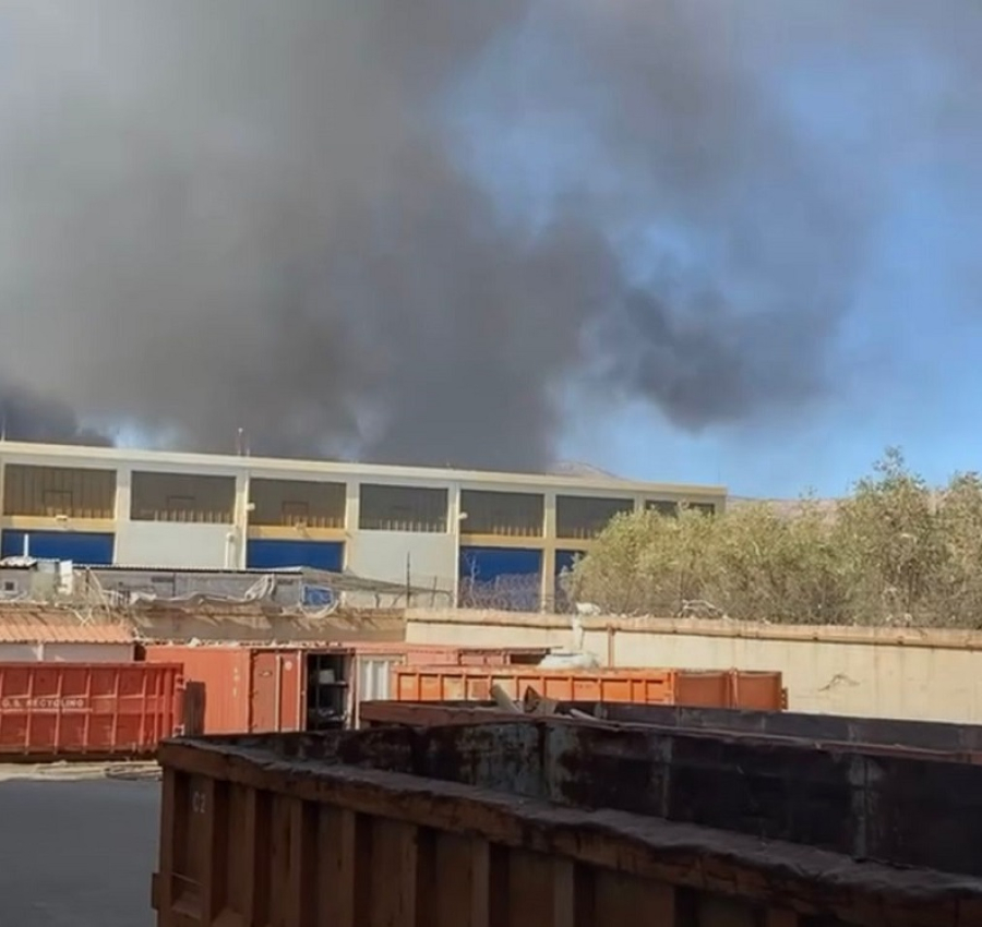 Εξαιτίας της φωτιάς γίνεται εκτροπή της κυκλοφορίας των βαρέων οχημάτων στη συμβολή των λεωφόρων ΝΑΤΟ και Μ. Αλεξάνδρου.