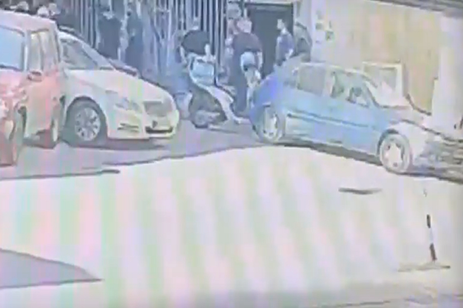 Το βίντεο, από κάμερα ασφαλείας στην περιοχή, καταγράφει τη στιγμή που ξεσπούν τα επεισόδια. Κάποιοι οπαδοί απομακρύνονται τρέχοντας, ενώ άλλοι κρατούν καδρόνια στα χέρια.