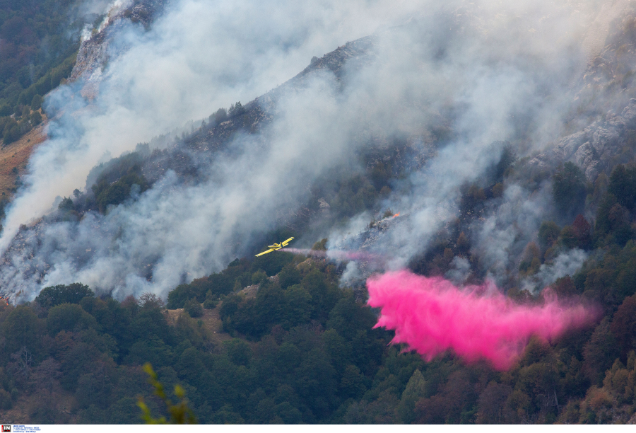 Ρίψεις νερού πραγματοποιούν οκτώ αεροσκάφη και τέσσερα ελικόπτερα.