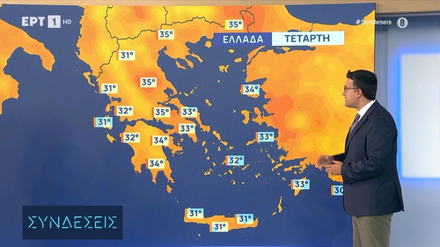 Η θερμοκρασία δε θα σημειώσει αξιόλογη μεταβολή. Θα φτάσει στα ηπειρωτικά τους 33 με 35 βαθμούς και στη νησιωτική χώρα τους 30 με 32 βαθμούς Κελσίου.