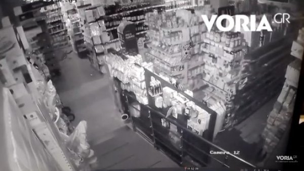 Χαρακτηριστικό είναι το στιγμιότυπο από κάμερα ασφαλείας καταστήματος σούπερ μάρκετ στην περιοχή της Ποτίδαιας την ώρα του σεισμού.