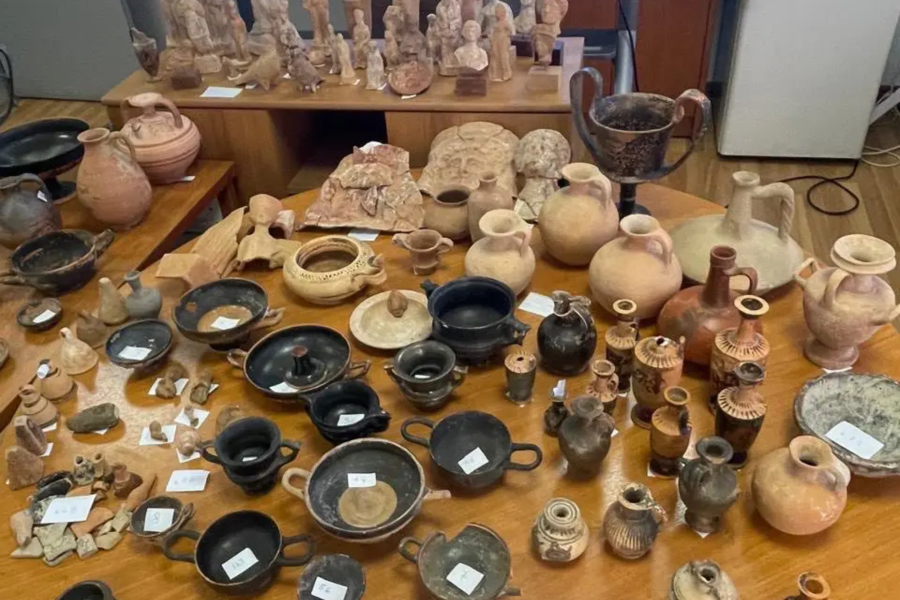 Μεταξύ άλλων κατασχέθηκαν κύλικες, φιαλίδια, λήκυθοι, πήλινα ειδώλια και ομοιώματα, πρόχοι, μικρογραφικοί σκύφοι αρχαϊκής και κλασικής/ελληνιστικής περιόδου, πήλινοι λύχνοι ρωμαϊκών/βυζαντινών χρόνων, χάλκινα και αργυρά νομίσματα, καθώς και θραύσματα κεραμικής.