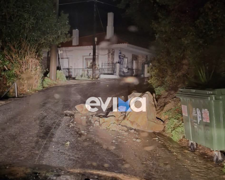 Κακοκαιρία στην Εύβοια: Κατολισθήσεις και πτώσεις βράχων σε κεντρικό δρόμο – Προσοχή στους οδηγούς