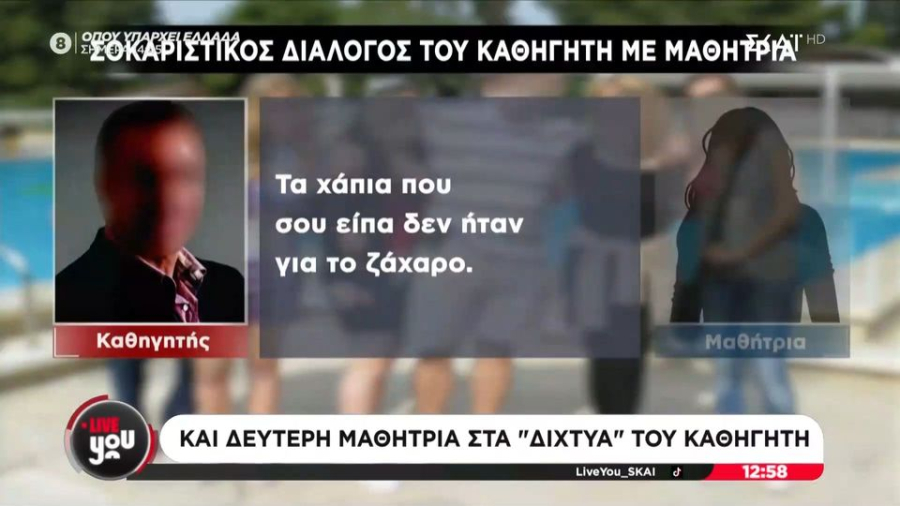 Μάλιστα, υπάρχουν συνομιλίες το 2023, με ξεκάθαρη αναφορά σε σεξουαλική επαφή, όταν οι μαθήτρια ήταν ακόμη 15 χρόνων. Στις συνομιλίες, η ανήλικη μιλάει για τη χρήση κάποιου χαπιού ή κάποιας ουσίας και φέρεται να ρωτά τον 52χρονο τι της έδωσε και ήταν έτσι.