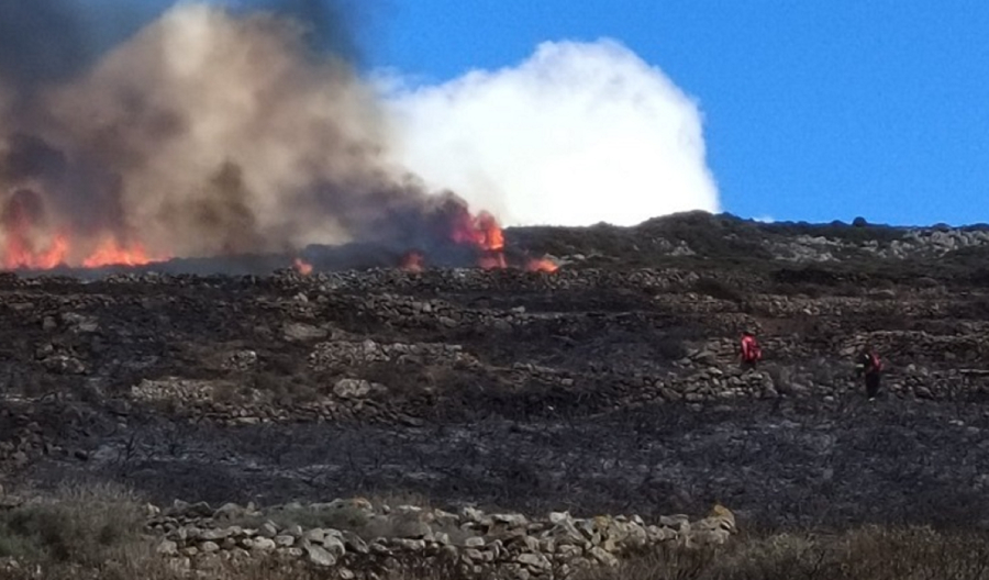 Υπό μερικό έλεγχο τέθηκε, σύμφωνα με την Πυροσβεστική, η φωτιά που εκδηλώθηκε το μεσημέρι της Τρίτης στην Πάρο, στην περιοχή Βουνιά Μαραθίου.